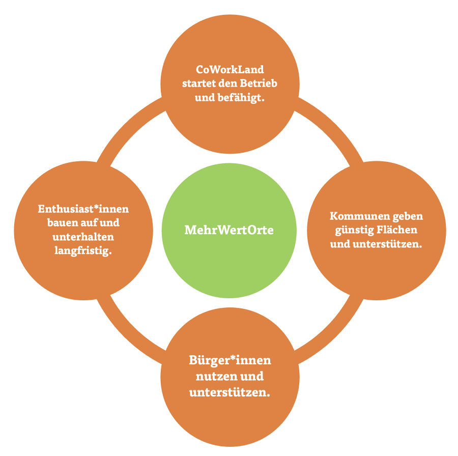 Unser Social-Franchise-Modell ermöglicht es lokalen Enthusiast*innen, ihren Traum von einem lebendigen Gemeinschaftsort – dem MehrWertOrt – in ihrer Gemeinde zu verwirklichen.