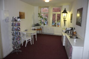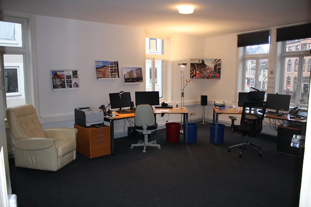 In mehreren verbundenen Fachwerkhäusern stehen Mehrzweck- und Versammlungsräume, modern eingerichtete Büros und lässige Sozialräume zur Verfügung.