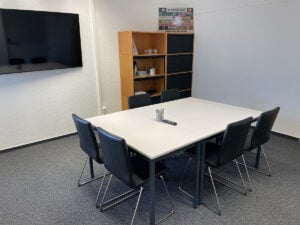 Kleiner Besprechungsraum (20qm): 6-8 Personen, 65” Smart TV mit drahtloser Übertragungstechnik