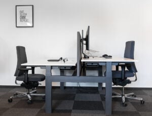*Private Office* Unsere Private Offices können flexibel genutzt werden. Hier finden, je nach Abstimmung, 2-4 Personen Platz. Die Kaffeeküche befindet sich auf dem gleichen Flur und bietet u.a. die Möglichkeit Lebensmittel im Kühlschrank zu lagern. Außerdem können die hier vorhandenen Geräte genutzt werden, dazu gehören neben dem Geschirr auch ein Wasserkocher, eine Kaffeemaschine, eine Mikrowelle und eine Spülmaschine. In jedem Büro befindet sich eine Grundausstattung, die folgendes beinhaltet: – Höhenverstellbarer Schreibtisch – Ergonomischer Schreibtischstuhl – Monitor – Laptop Ständer – Maus, Tastatur, Verkabelung – Rollcontainer Zusätzlich bieten wir folgende Leistungen an: – Postadresse – Eigener Internetzugang – 24/7 Zutrittskontrolle durch Token – Kaffee, Wasser, Tee Flat – Nutzung der Seminar- und Kursräume nach Absprache – Kostenfreie Parkplätze direkt am Gebäude