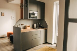 Voll eingerichtete Küche mit Mikrowelle …