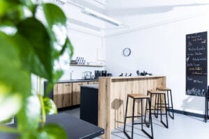 Alle Schreibtische sind mit LED-Beleuchtung und USB-Ladebuchsen ausgestattet. Auf Wunsch sind externer Monitor, Maus und Tastatur erhältlich. Während der Arbeitspausen in unserer Küche oder den zahlreichen nahegelegenen Gastronomieangeboten können persönliche Sachen und Wertgegenstände sicher in abschließbaren Spinten verwahrt werden.