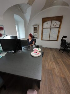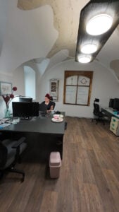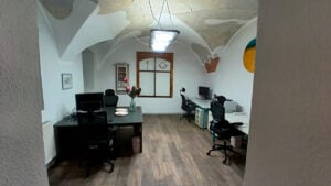 Das erste Büro entsteht gerade im Erdgeschoss, hier werden 3-4 Coworker Platz finden, Es wird Plätze mit Monitor geben, die den mitgebrachten Laptop zum vollständigen Arbeitsplatz machen. Es wird einen Multifunktionsdrucker geben und abschließbare Spinte, die je nach gewähltem Tarif in Voll- oder Teilzeit genutzt werden können.