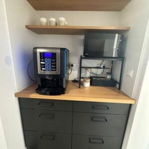 Kaffeemaschine, Mikrowelle, Kühlschrank, Wassersprudler, Spülmaschine
