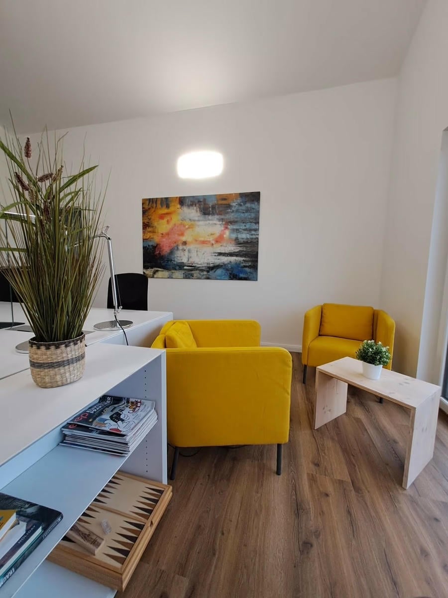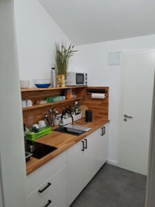Mit unserer voll ausgestatteten Küche, gemütlichen Sitzbereichen und einem Tischkicker bist du auch in deiner Pause gut beschäftigt. Sollte dein Arbeitstag doch mal länger dauern und dein Heimweg zu lang, stehen dir ein Gästezimmer, sowie ein Duschbad zur Verfügung. Es handelt sich bei den Räumlichkeiten um einen Neubau, mit modernen Sanitärbereichen. Parkmöglichkeiten findest du ebenfalls vor der Tür.