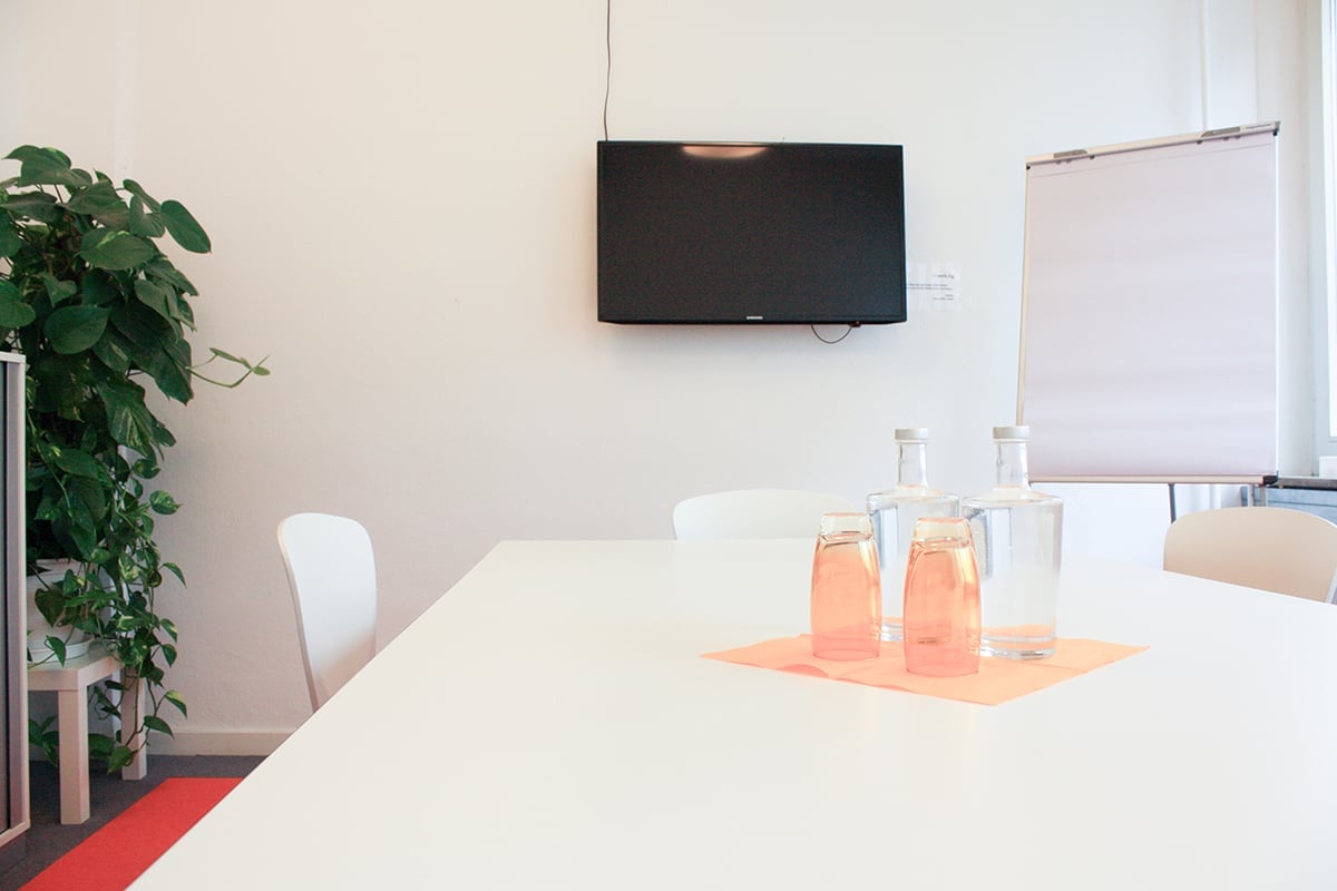 Unser Orange Space hat Platz für bis zu 6 Personen. Er ist ausgestattet mit Whiteboard, Flipchart und einem TV für Präsentationen (HDMI Anschluss).