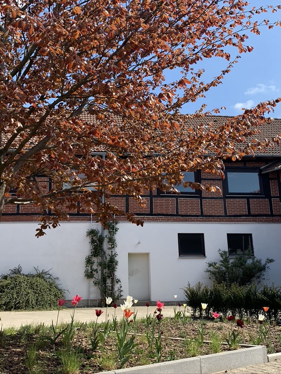 Das Gelände, einst ein Bauernhof, ist seit Beginn der 80er Jahre im Wandel, wurde mit Bauten ergänzt und wird seit 2019 sukzessive umgestaltet. Natur und dörflicher Charme treffen modernes Coworking. Wir möchten die ländlichen Strukturen unterstützen, Abwanderung vermeiden helfen und Arbeitswelten für die Elm-Asse-Region attraktiver machen.