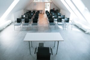 bis zu 24 Personen, Tische + Stühle, Metaplanwand, Flipchart, Whiteboard, Flachbildschirm