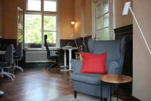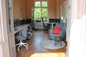 Der Coworking Space „GLEIS 21“ am Bahnhof Wiesenburg/Mark bietet Platz für bis zu fünf Personen. Er kann von einzelnen Coworker:innen sowie von kleineren Teams für Teamtage und Workshops genutzt werden. Zur Ausstattung gehören neben süßen Snacks und Kaffeemaschine auch ein Multifunktionsdrucker, ein internetfähiges Smartboard, Büro- und Moderationsmaterial.