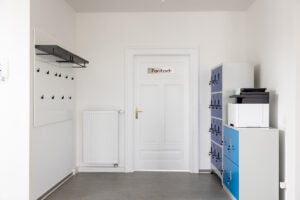 Schließfächer, Wlan-Drucker, Garderobe