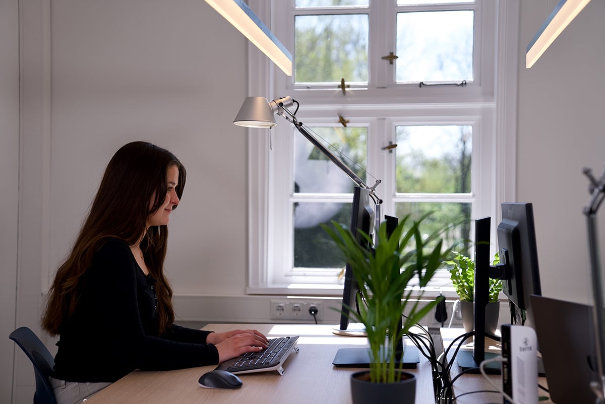 Büro 3, 10 qm, 1 Arbeitsplatz mit Docking Station, Monitor, Tastatur und Maus