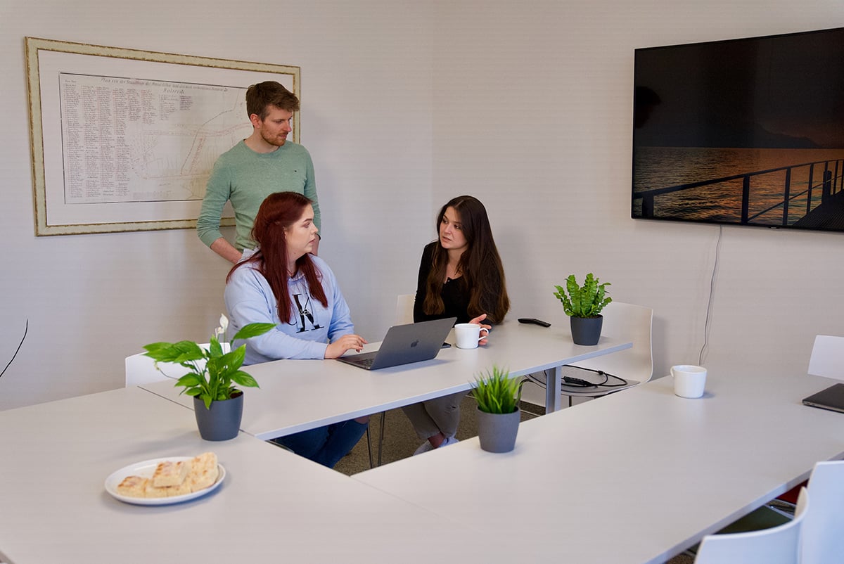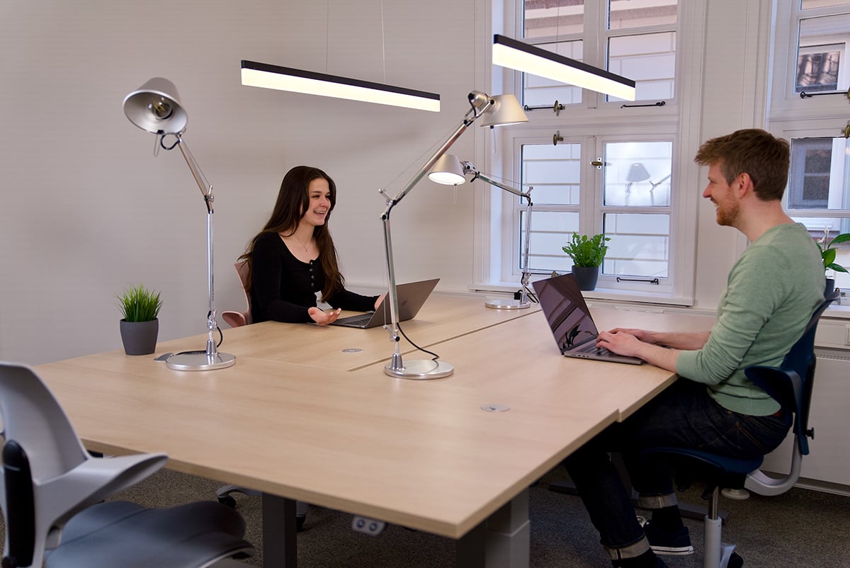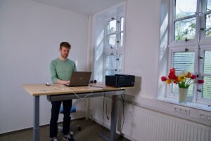 Büro 1, 22 qm, 3 Arbeitsplätze, zwei davon mit Docking Station, Monitor, Tastatur und Maus, Laserdrucker