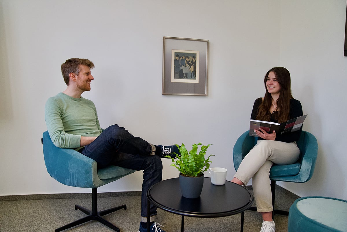 Büro 4, 30 qm, 2 Arbeitsplätze, Multifunktionsdrucker, 1 Besprechungs-ecke mit 2 Sesseln und Tisch
