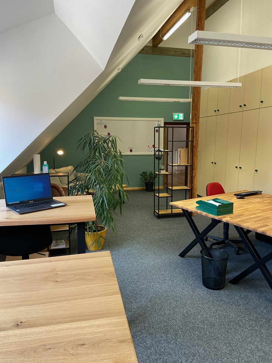 In unserem Coworking Space bieten wir sechs voll ausgestattete Arbeitsplätze mit Breitbandanschluss – flexibel buchbar nach Deinem Bedarf!