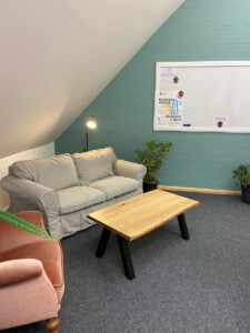 … eine gemütliche Sitzecke zum Brainstormen und Austauschen