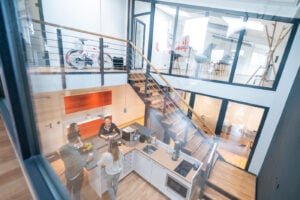 Wenn Arbeiten wie nach Hause kommen ist Mitten in unserem Coworking-Space in Iserlohn haben wir ein Dorf für modernes Arbeiten. In kleinen zweistöckigen Holzhäusern ist Platz für ganz besondere Büros – mit Balkon im OG. Designmöblierung, gute Nachbarschaft, Community-Events und der Duft nach Holz sind inklusive. Sicher dir ein inspirierendes Bürohäuschen in unserer OFFICE & FRIENDS-Siedlung: – Über zwei Etagen möglich – Nachhaltige Holzbauweise – Für zwei bis fünf Personen – Höhenverstellbare Tische – Ergonomische Stühle – Mit Balkon möglich – Abstellkammer