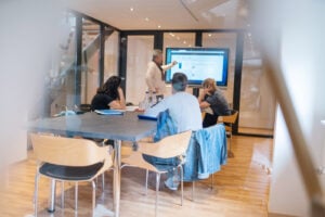 Zeig, was du kannst, erarbeite neue Wege! Unser Besprechungsraum ist mit allem ausgestattet, was du brauchst, um Meetings, Präsentationen, Seminare und Schulungen für bis zu 8 Personen reibungslos und effektiv durchzuführen. Mit dem interaktiven Smartboard lassen sich Ideen gemeinsam erarbeiten, Pläne visualisieren, Ziele optisch darstellen. Whiteboard und FlipChart stehen ebenso zur Verfügung, spontane Einfälle können dort genauso festgehalten werden, wie langfristige Unternehmenspläne. – für Workshops, Seminare, Präsentationen und Schulungen (bis 8 Personen) – heller, offener Raum mit viel Luft für gute Ideen – FlipChart und Smartboard für kreatives und effektives Arbeiten – geeignet für Videokonferenzen – High-Speed-Internet – Parkplätze