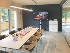 Zeig, was du kannst, erarbeite neue Wege! Unser Besprechungsraum ist mit allem ausgestattet, was du brauchst, um Meetings, Präsentationen, Seminare und Schulungen für bis zu 8 Personen reibungslos und effektiv durchzuführen. Mit dem interaktiven Smartboard lassen sich Ideen gemeinsam erarbeiten, Pläne visualisieren, Ziele optisch darstellen. Whiteboard und FlipChart stehen ebenso zur Verfügung, spontane Einfälle können dort genauso festgehalten werden, wie langfristige Unternehmenspläne. – für Workshops, Seminare, Präsentationen und Schulungen (bis 8 Personen) – heller, offener Raum mit viel Luft für gute Ideen – FlipChart und Smartboard für kreatives und effektives Arbeiten – geeignet für Videokonferenzen – High-Speed-Internet – Parkplätze