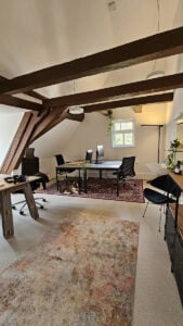 Im charmanten Ambiente des alten Fachwerkhauses treffen Tradition und Moderne aufeinander. Schnelles Internet und guter Kaffee in Innenstadtlage – da macht das Arbeiten Spaß.