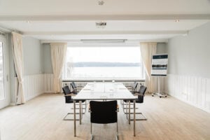 Drei unterschiedlich große Tagungsräume von 55 bis 110m², mit viel Tageslicht und Seeblick, moderne Möblierung und Tagungstechnik