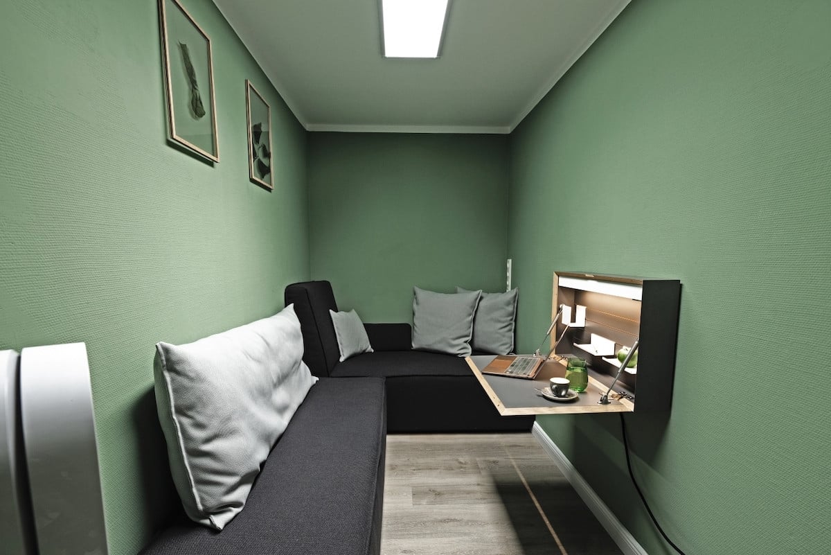 Für Video Conferencing mit 1 bis 3 Teilnehmern, modern eingerichtet.