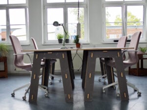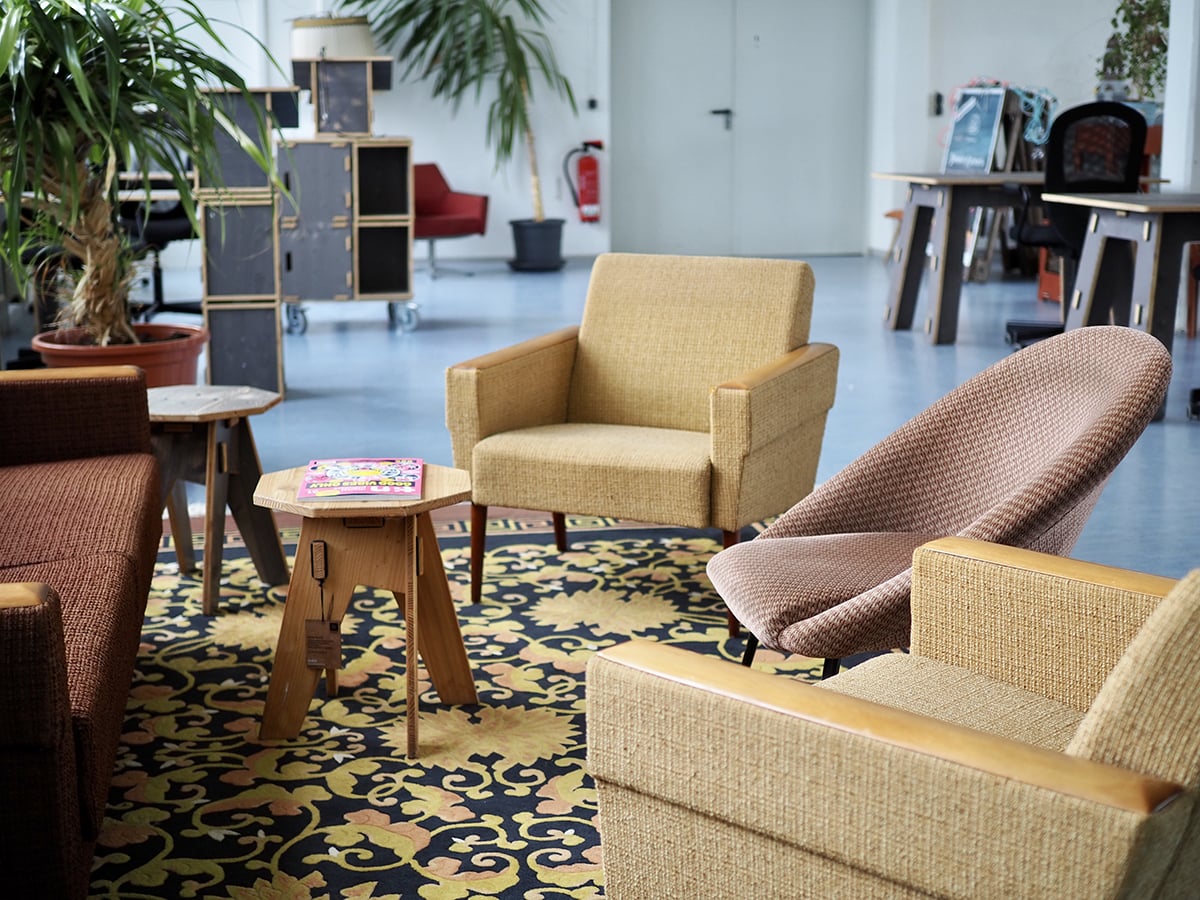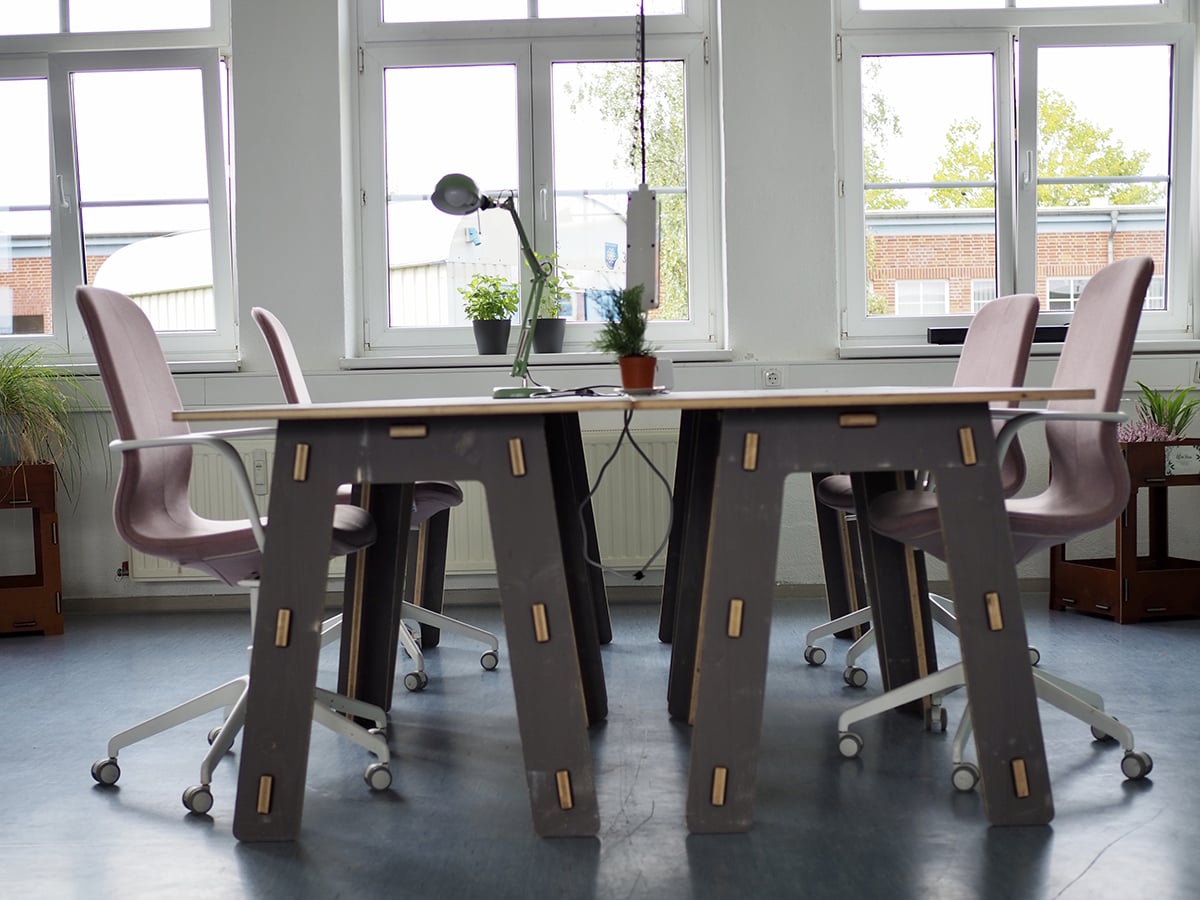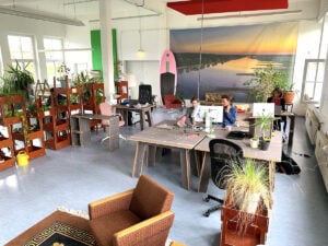 In der schönen Industriehalle bieten wir Gründerinnen, Start-ups, Pendlerinnen und Unternehmen geteilte Arbeitsplätze und einen Ort zur Vernetzung an. Die Räume laden zum Arbeiten in entspannter Atmosphäre ein. Den CoWorker*innen stehen mehr als zehn Arbeitsplätze zur Verfügung. In dem großen Raum gibt Sitzecken und Meetingszonen.