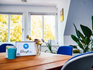 5 Schreibtische (5 Plätze), 2 Counter (2 Steharbeitsplätze), Schließfächer, Toilette, Küche, Platz für ca. 100 Personen als Eventfläche, Telefonierecke mit Blick auf Bücker Dom