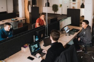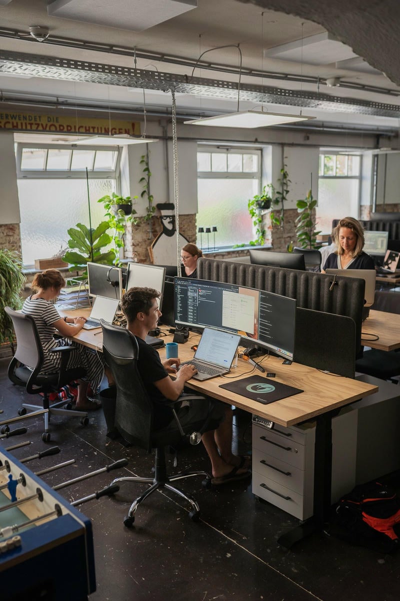 8 – 14 höhenverstellbare Schreibtische mit Drehstühlen und Rollcontainern Küchenecke mit Kühlschrank und Mikrowelle Schalldichte Telefonbox Tischfußball, Tischtennis Esstisch Lounge-Area