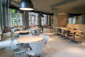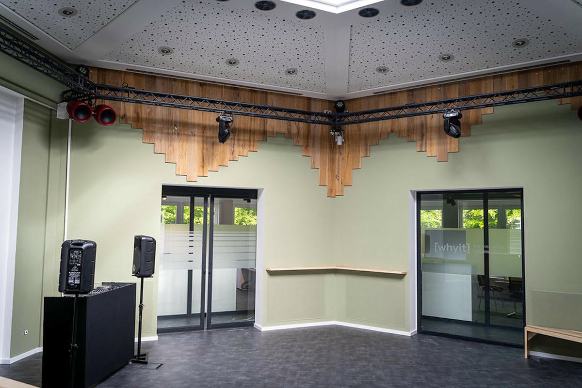 Der [whyit] Space ist der zentrale Treffpunkt des Campus. Auf 2 Etagen laden modernes Design, gepaart mit kulinarischem Angebot zum Verweilen und Austausch in entspannter Atmosphäre ein. Im gesamten Space stehet ein kostenloser WLAN Hotspot zur Verfügung.