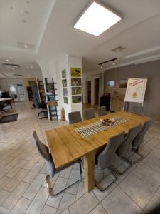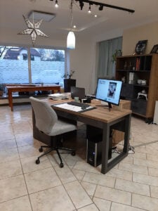 Im gemütlichen Open Space findest Du 6 Arbeitsplätze, eine Besprechungs- und Seminarsektion und eine Sofaecke für den gemütlichen Austausch zwischendurch. Wir haben einen weiteren Raum als „Telefonzimmer“ eingerichtet, in dem Du ungestört telefonieren, Videokonferenzen abhalten oder auch abgesetzt arbeiten kannst. Du hast bei uns kostenloses WLAN im Glasfasernetz, kannst auf einen modernen Drucker zugreifen, Beamer und Leinwand sowie ein Bildschirm stehen für Präsentationen oder Videokonferenzen ebenso bereit wie Flipchart und Moderationsmaterial. Dank unseres codebasierten Schließsystems kannst Du den Coworking-Space zu allen Zeiten flexibel nutzen – auch spät abends oder am Wochenende. Für alle, die bei uns Content produzieren möchten, haben wir die passende Beleuchtung für Video- und Fotoaufnahmen inklusive Stative vorrätig. Eine Flatrate für Kaffee, Tee und Mineralwasser gehört selbstverständlich zu unserer Gastfreundschaft.